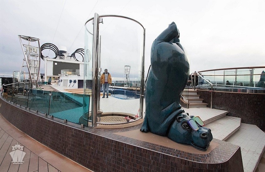 "South Beach Pool" – s jedinečným umiestnením na korme 7. paluby, kde sa budete cítiť naozaj ako na pláži. 2 panoramatické výťahy ho spájajú s najvyššími palubami.