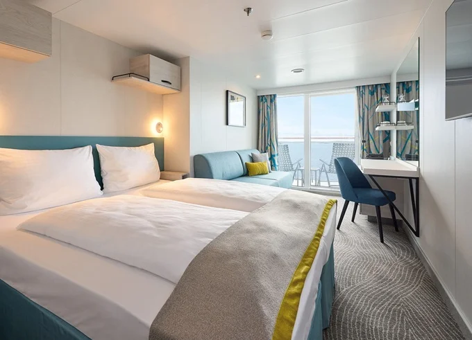 BAAO - Kajuta s balkónom kat. A 17 m² + balkón 5 m². 10,14. paluba. Max 3 osoby. 6 198 € 3 099 € za osobu