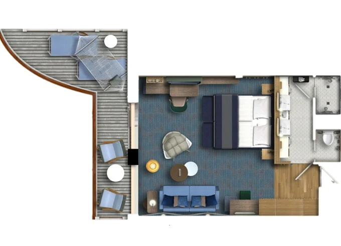 JBAO - Junior Suite s balkónom 26 m² + balkón 7 m² so stolom. 10,11. paluba. Max 4 osoby. Výhody Junior Suite. 10 198 € 10 198 € za osobu