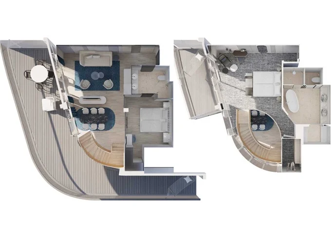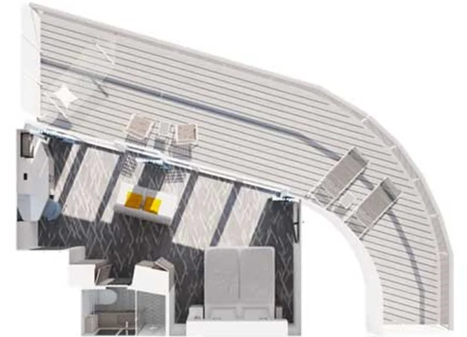 | VEPO - Kajuta s terasou Premium 30 m² + balkón 35 m² so stoličkami, ležadlami a hojdacou sieťou. 15. paluba. Max 2 osoby. | 3 042 € 1 521 € za osobu | ||