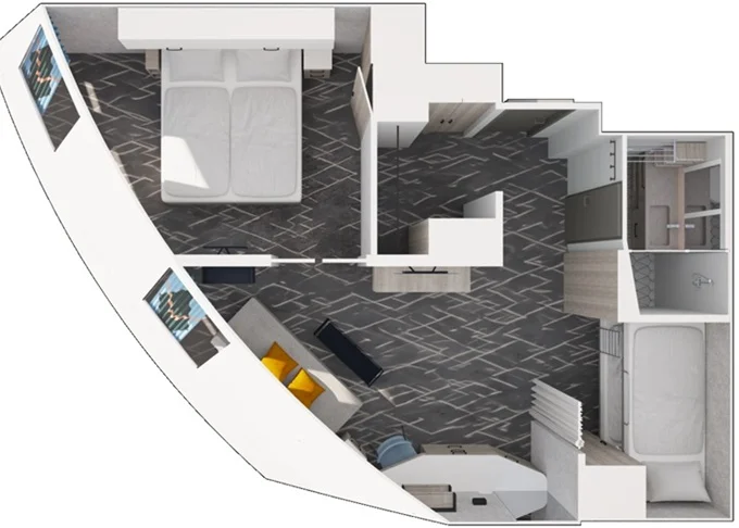 | JBCO - Junior Suite s balkónom C 26 m² + balkón 7 m² so stoličkami a podnožkami. 7. paluba. Max 4 osoby. Výhody Junior Suite. | 2 658 € 2 658 € za osobu | ||
