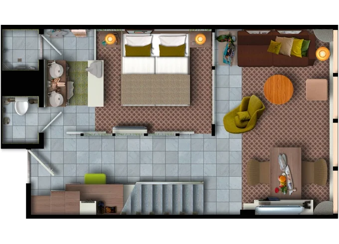 | SUTO - Themen Suite 54 m² + balkón 15 m² so stolom, ležadlom a hojdacou sieťou. Spálňa, obývacia časť, šatník. 10. paluba. Max 4 osoby. Výhody Suite. | 9 336 € 2 334 € za osobu | ||