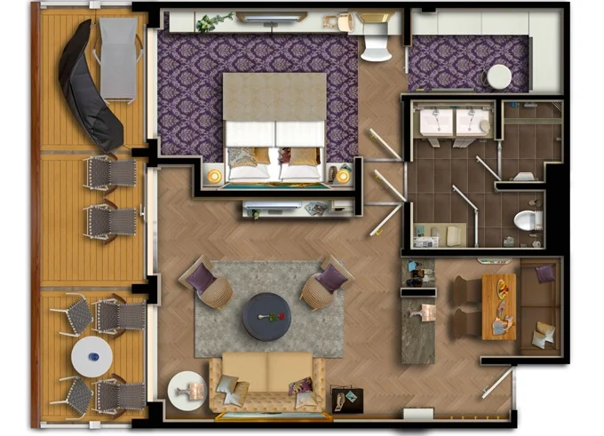 | SUTO - Themen Suite 54 m² + balkón 15 m² so stolom, ležadlom a hojdacou sieťou. Spálňa, obývacia časť, šatník. 10. paluba. Max 4 osoby. Výhody Suite. | 9 696 € 2 424 € za osobu | ||